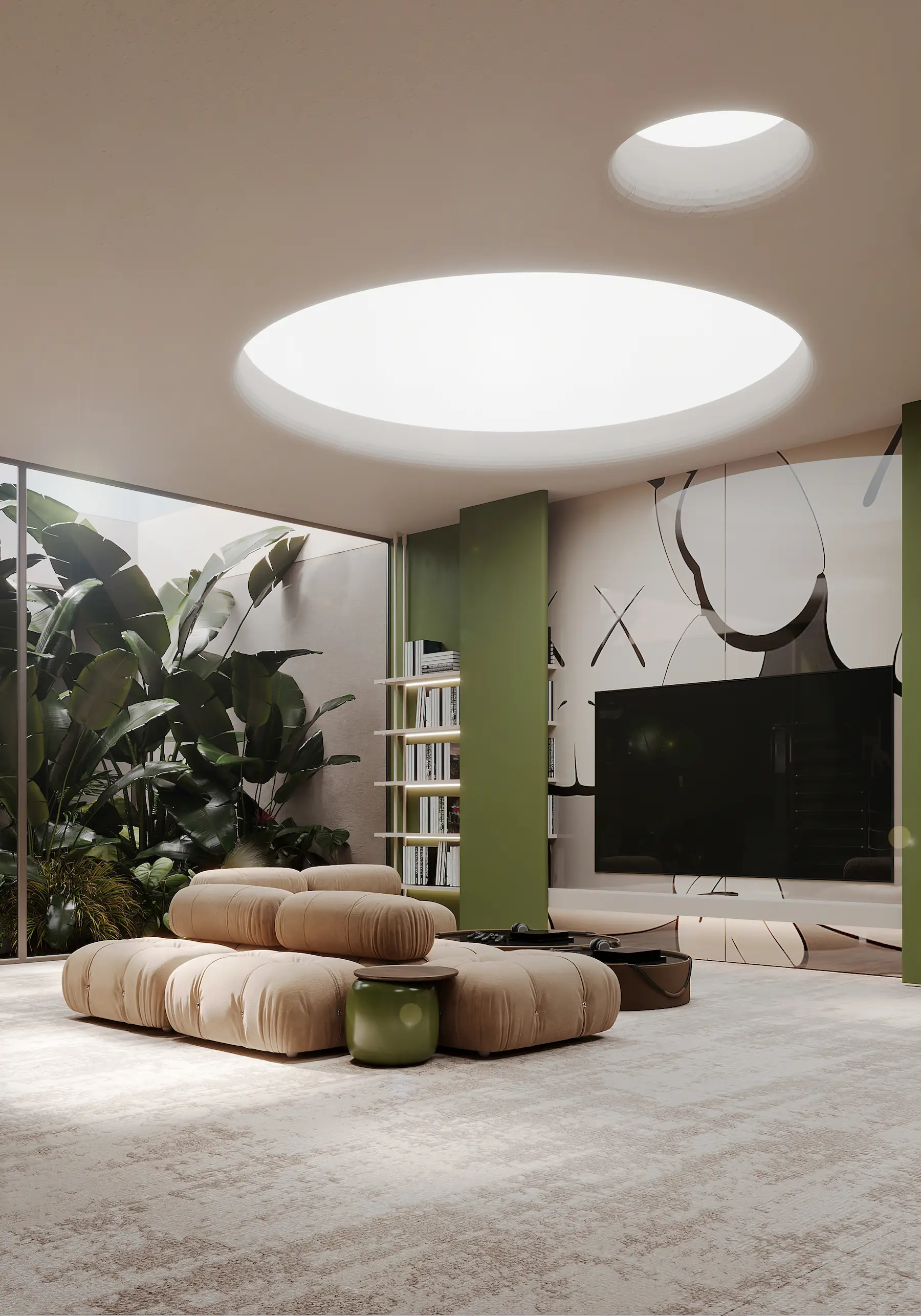 The -1 level includes a cinema, kids’ room, gym and more — all naturally lit and thoughtfully designed.